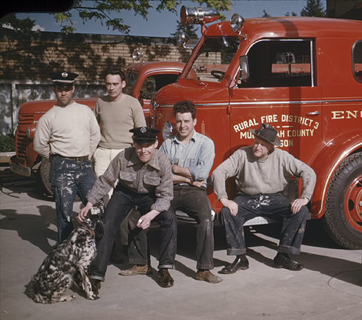 Brad Bentson – February 23, 2017: Multnomah Fire Department paint crew, ca. 1940. L to R – Lorry Marshal, Dick Layman, ?, Virg Spencer, Harry Lawrence.