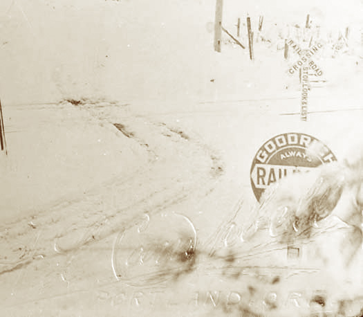 Two railroad crossing signs, one placed by Multnomah County, the other by Goodrich B. F. Goodrich Company. The photographer’s (J. L. Campbell, Portland, Ore) mark is also visible.