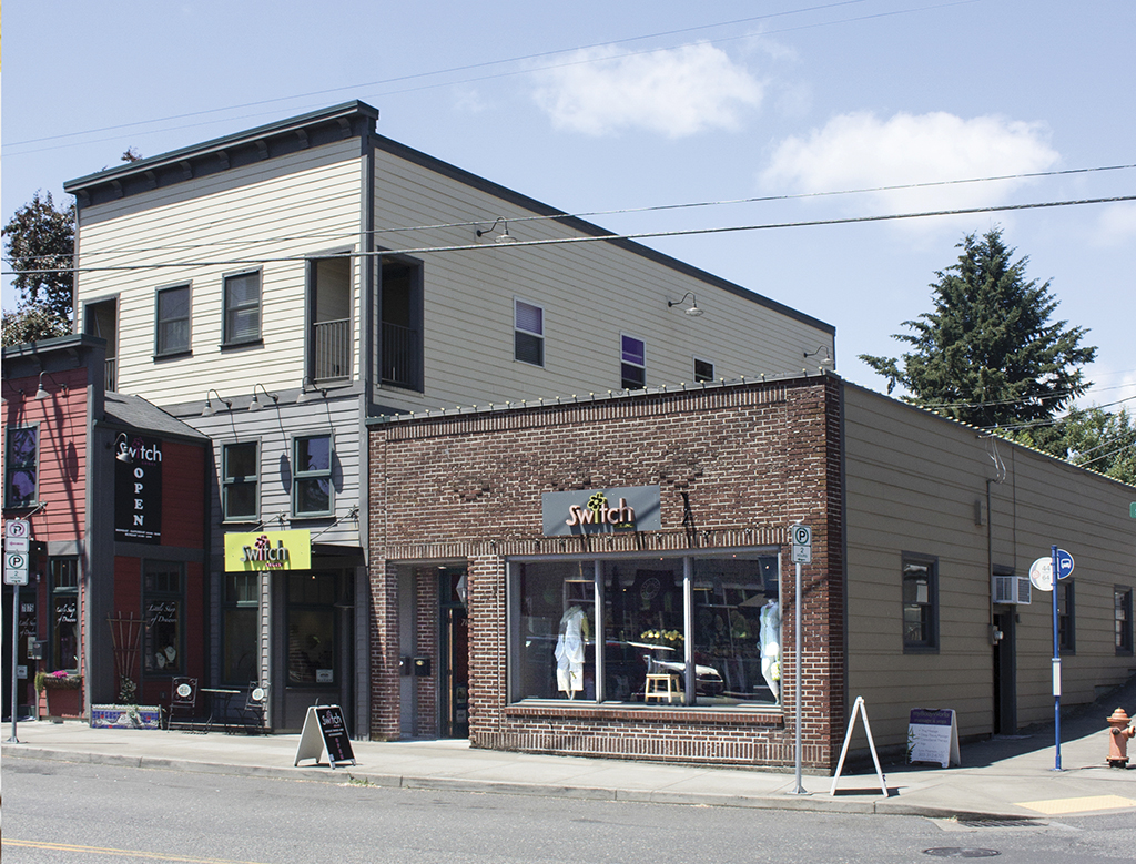 This summer we did a series of “Then and Now” posters for Multnomah businesses. The posters features a vintage image of the building housing the business, a small inset image of the current facade, and a brief history of the building. Over the next several weeks we’re going to publish the images and an expanded version of the histories here. This week’s “Then and Now” is Switch.